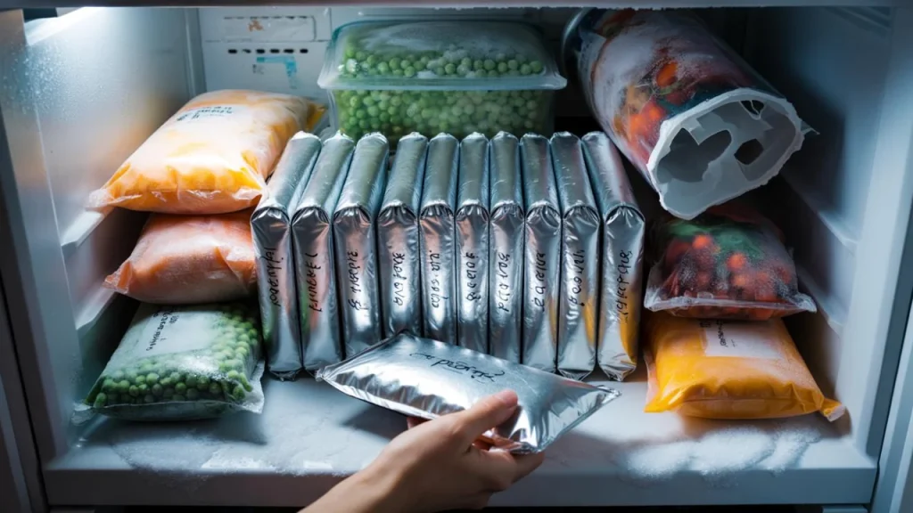 Then her sister visited last week and opened that same freezer like she was browsing a library. Everything was flat, labeled, and stacked like silver envelopes. “Aluminium foil,” her sister said with a shrug. “Changed my life, honestly.”