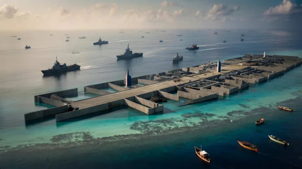 - Infrastructure Development: Once the artificial land mass reaches sufficient size, concrete structures, runways, and port facilities are constructed
